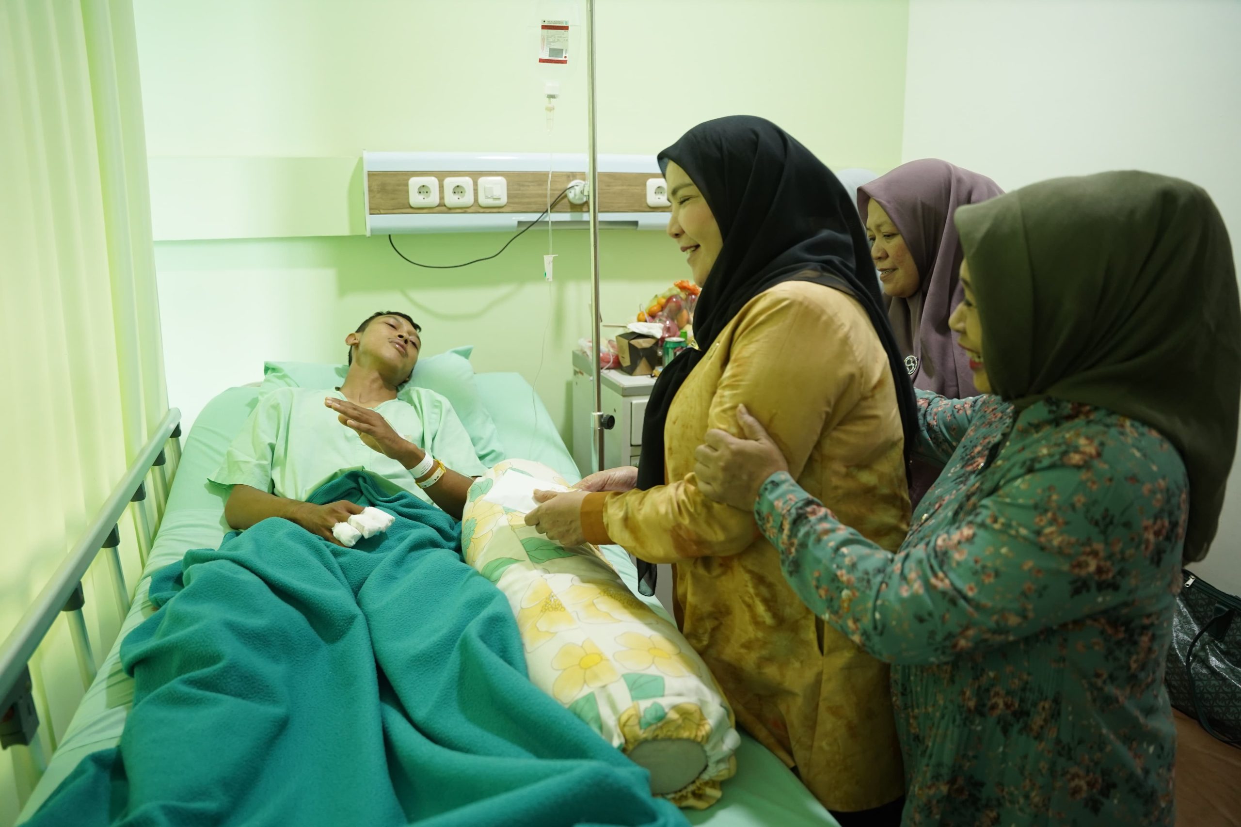 Walikota Eva Menjenguk Pegawai BPBD Kecelakaan Saat Kerja di Rumah Sakit