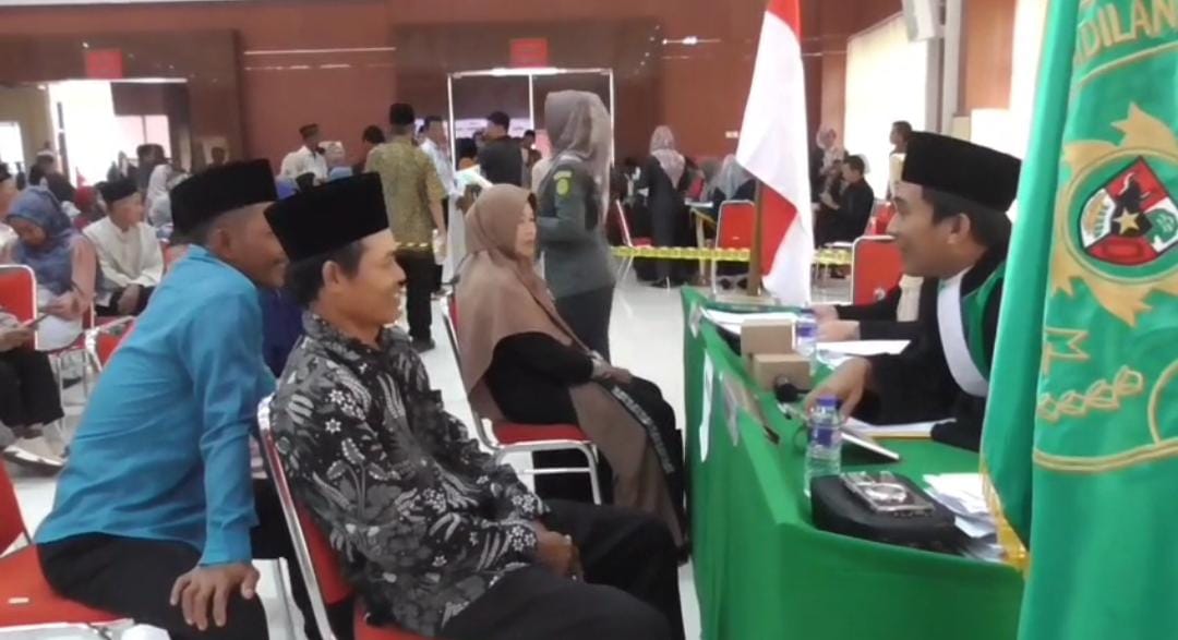 Ratusan Pasangan Suami Istri yang belum memiliki Dokumen Pernikahan, mengikuti sidang di aula sumergou rabu pagi (20/08/25). Dalam kegiatan Isbat Nikah Terpadu bertujuan memberikan, Dokumen Pernikahan Kepada Pasangan Suami Istri yang sudah menikah, namun belum tercatat.