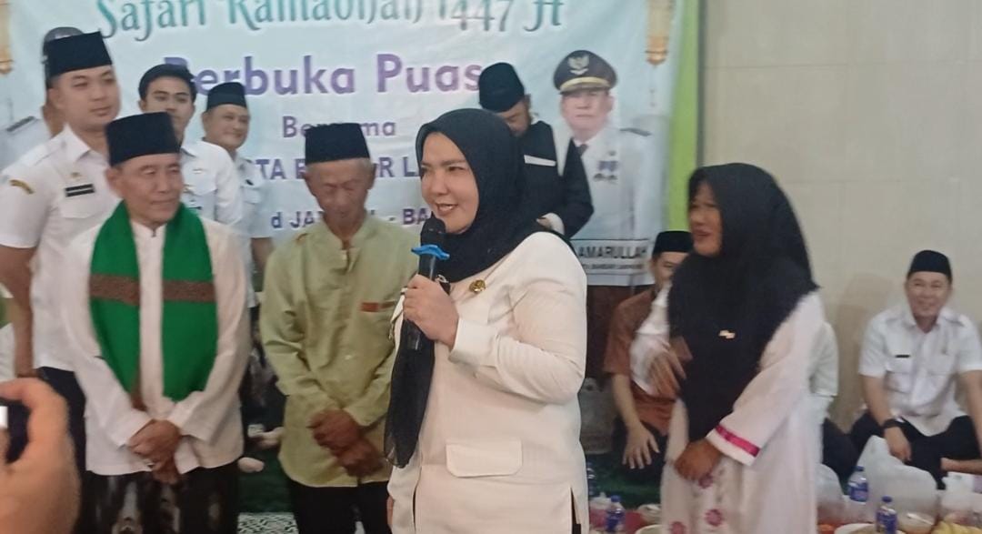 Safari Ramadhan, Wali Kota Bandar Lampung, Eva Dwiana, kasih bantuan sebesar Rp50 juta untuk Masjid Al Barokah yang berada di Kelurahan Campang Jaya, Kecamatan Sukabumi, Kota Bandar Lampung, Rabu (4/3/2026).
